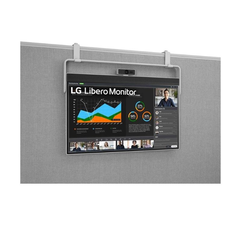 Màn hình LG Libero 27BQ70QC-S sở hữu kích thước màn hình 27 inch tiêu chuẩn, thiết kế treo hoặc chân đỡ giúp tối ưu hóa không gian làm việc của bạn một cách hiệu quả. Đặc biệt, webcam độ phân giải Full HD sẽ khiến cuộc họp của bạn trông chân thật và diễn ra mượt mà nhất có thể.