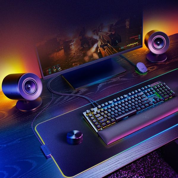 Không chỉ mang tới trải nghiệm thính giác tuyệt vời, hãy khiến không gian gaming của bạn trở nên đỉnh hơn bao giờ hết với Led RGB phía sau 2 loa vệ tinh. Tùy chọn, đồng bộ Led RGB của Razer Nommo V2 Pro để nâng cao trải nghiệm thị giác của bạn bằng nhưng hiệu ứng ánh sáng ấn tượng.