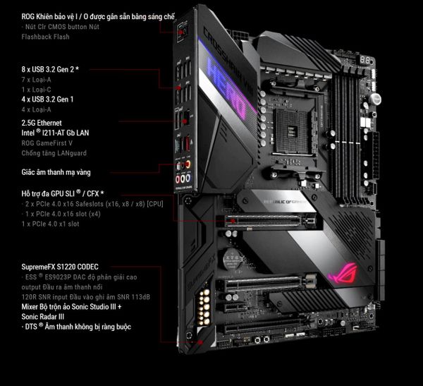 Với sự hỗ trợ cho CPU AMD Ryzen ™ thế hệ thứ 3 , trên bo mạch, Realtek ® 2.5 Gbps LAN và PCIe 4.0, cùng với thiết kế kim loại được đại tu và được trang bị các tính năng ROG nổi tiếng, đó là nền tảng hoàn hảo cho giàn AMD Ryzen của bạn.