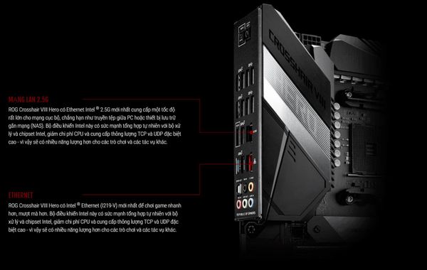 ROG Crosshair VIII Hero cung cấp kết nối tiên tiến để đảm bảo trải nghiệm chơi game liền mạch. Với mạng cực nhanh mới nhất, bao gồm Wi-Fi 6 (802.11x) và Ethernet kép với một cổng 2.5G, ROG Crosshair VIII Hero loại bỏ tất cả các nút thắt để chơi trực tuyến và LAN, giảm thiểu độ trễ và cung cấp trải nghiệm mượt mà hơn. Ngoài ra, M.2 hỗ trợ công nghệ AMD StoreMI để tối đa hóa tốc độ ổ SSD của bạn để có thời gian tải nhanh hơn và âm thanh trên bo mạch tối cao cung cấp âm thanh tuyệt vời, trong khi tiết kiệm khe cắm PCIe.