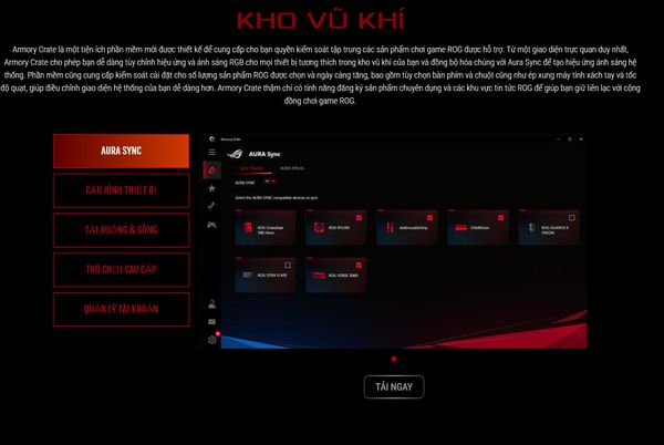 ROG cung cấp một loạt phần mềm trực quan cho phép dễ dàng kiểm soát phần cứng chơi trò chơi tiên tiến của bạn và đảm bảo khả năng tương thích thành phần liền mạch. Từ ánh sáng RGB, kết nối mạng và âm thanh đến tối ưu hóa lưu trữ và hơn thế nữa, ROG cung cấp cho bạn sức mạnh để cá nhân hóa hệ thống của bạn theo cách bạn muốn.