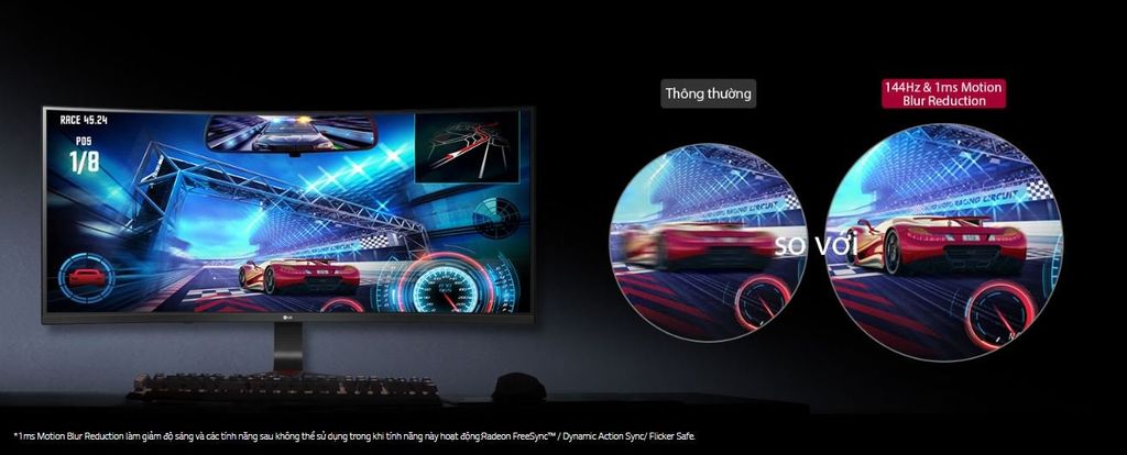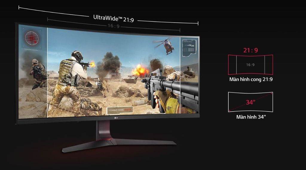 Tỷ lệ khung hình 21:9 và màn hình cong là sự kết hợp hoàn hảo cho người chơi: bạn sẽ có góc nhìn rộng hơn trong các trò chơi FPS mang đến lợi thế chiến lược.