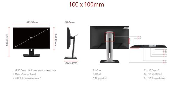 Ngoài kết nối USB Type-C, VG2755-2K còn có đầu vào HDMI, DisplayPort và USB 3.1 tích hợp cho phép bạn kết nối với nhiều thiết bị.