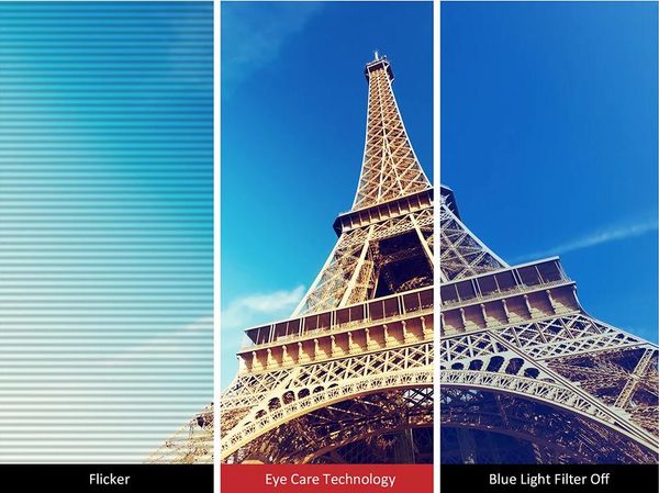 Công nghệ Không nhấp nháy và Bộ lọc ánh sáng xanh giúp loại bỏ tình trạng mỏi mắt do tia sáng có hại và thời gian xem kéo dài.