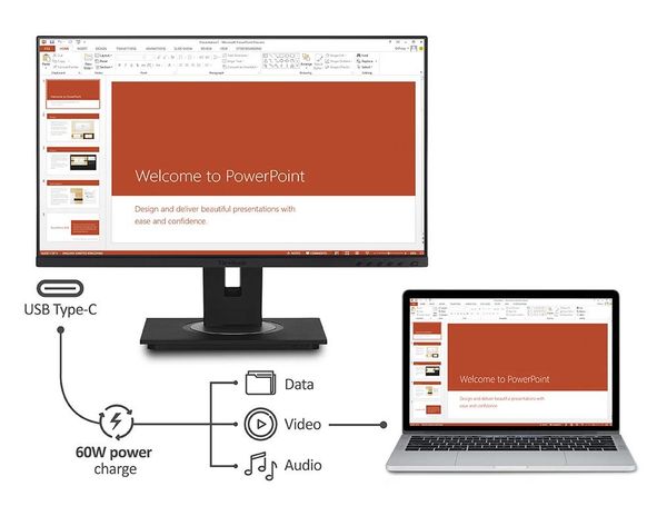 Cổng USB Type-C tích hợp cung cấp khả năng tương thích vô hạn với hầu hết các thiết bị ngoại vi. Sạc dễ dàng cho nhiều loại thiết bị với công suất lên đến 60W và truyền tải âm thanh và video chỉ bằng một dây cáp.
