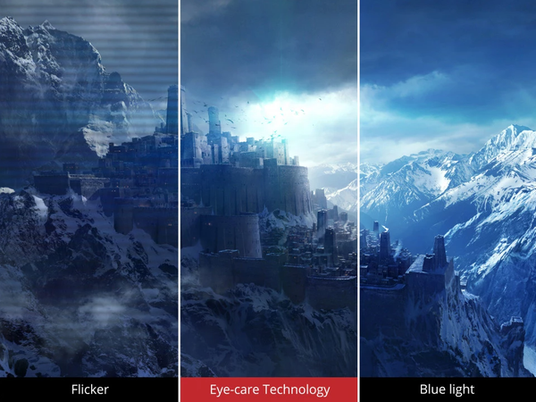 Công nghệ Khử nhấp nháy và Bộ lọc ánh sáng xanh giúp giảm mỏi mắt và mệt mỏi do thời gian sử dụng màn hình kéo dài trong suốt quá trình chơi game.