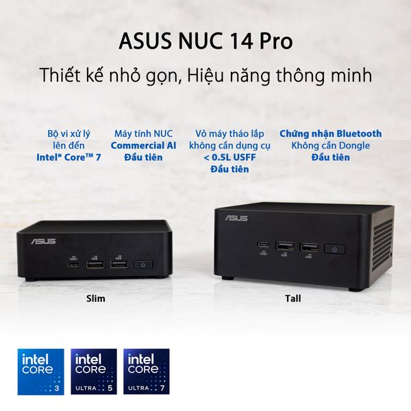 Mini PC - ASUS NUC 14 Pro (Intel Ultra 7 155H up to 4.80 GHz | Intel Arc Graphics | DDR5 5600Mhz | NVMe PCIe4.0 | Wi-Fi+Bluetooth) RNUC14RVHU700001I
