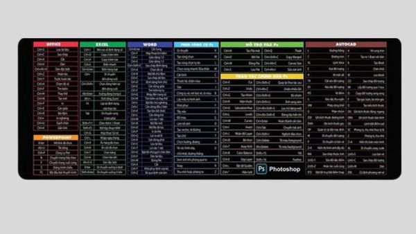 Lớp mặt là vải in chuyển nhiệt các phím tắt cho các ứng dụng 175 Phím Tắt Lệnh Của Office, Powerpoint, Excel, Word, PS, Autocad