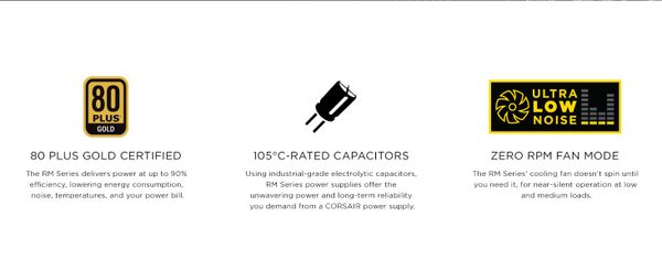 Corsair RM Series cung cấp năng lượng với hiệu suất lên tới 90%, giảm mức tiêu thụ năng lượng, tiếng ồn, nhiệt độ và hóa đơn tiền điện của bạn.