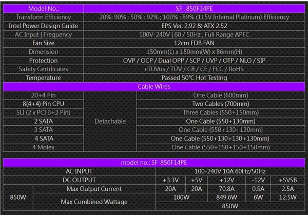 LEADEX VI Platinum PRO series PSU được chứng nhận 80PLUS Platinum với thiết kế cáp mô-đun hoàn toàn 100%. Siêu đầu nối 9 chân được cấp bằng sáng chế cho phép cáp CPU / PCI-E / SATA và Molex cắm vào bất kỳ ổ cắm đa năng nào. Cáp ribbon phẳng siêu linh hoạt giúp tối đa hóa giải pháp định tuyến cáp tốt nhất cho PSU. Quạt FDB 12cm với thiết kế ECO giúp giảm thiểu tiếng ồn (dBA).