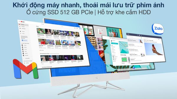 Sử dụng ổ cứng SSD 512 GB, HP AIO 24 chỉ tốn 10 - 15 giây để khởi động máy, các ứng dụng khởi chạy trong vài giây và toàn bộ hệ thống hoạt động trơn tru, mượt mà và linh hoạt.Bộ nhớ lớn để lưu trữ tài liệu, các tựa game hay những bộ phim ưa thích. Ngoài ra, HP AIO còn hỗ trợ khe cắm HDD SATA 3 2.5 inch có thể biến chiếc máy tính của bạn trở thành kho lưu trữ khổng lồ.
