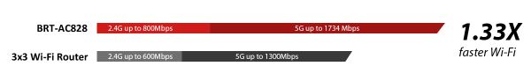 Để có tốc độ tối đa, hai cổng mạng WAN Gigabit trên BRT-AC828 có thể cung cấp tổng băng thông lên đến 2Gbps. Để đảm bảo kết nối mạng liên tục, tính năng này sẽ đem lại cấu hình hai kết nối Internet riêng biệt, với một kết nối dự phòng tự động chuyển, trong trường hợp kết nối kia bị ngắt.