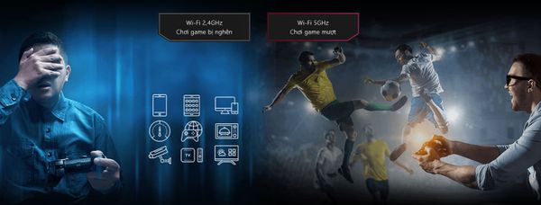 Kết nối các thiết bị của bạn với dải tần 5Ghz trên ROG GT-AC2900 cho phép bạn tránh dải tần 2,4Ghz thường bị tắc nghẽn đồng thời cho tốc độ Wi-Fi nhanh hơn 2 lần. Ngoài ra, chức năng lựa tần số động tùy chọn* (DFS) giúp mở khóa 15 kênh ít bị tắc nghẽn nhất trên dải tần 5GHz để tạo ra thêm băng thông cho việc chơi game.