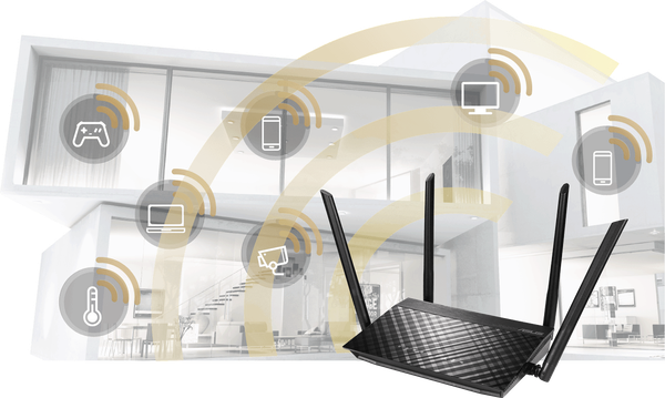 Bốn ăng ten hiệu suất cao bên ngoài trên RT-AC59U cải tiến phạm vi Wi-Fi và hiệu năng đa thiết bị trong nhà của bạn.