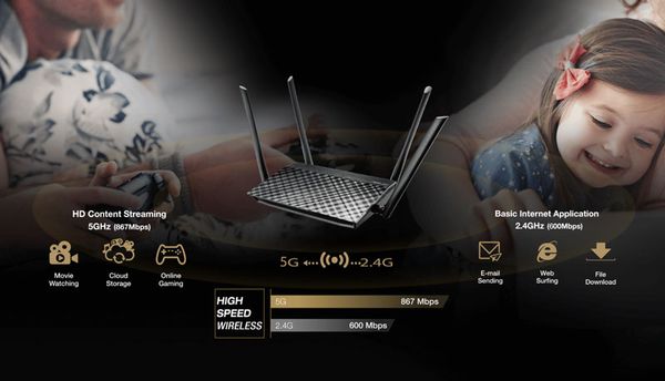 Chipset 802.11ac giúp ASUS RT-AC59U đạt tốc độ không dây cực nhanh nhờ việc được cải tiến lên Wi-Fi thế hệ thứ 5 (Wi-Fi 5G). Thiết bị router Wifi này cung cấp băng tần 5 GHz có tốc độ lên tới 867 Mbps và băng tần 2,4 GHz có tốc độ lên tới 600 Mbps, nhanh hơn gấp đôi so với các bộ định tuyến 300 Mbps.