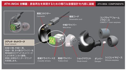 Với công nghệ driver bốn đường tiếng, ATH-IM04 tái tạo chính xác từng dải âm, từ âm trầm mạnh mẽ đến âm thanh tinh tế nhất. Cùng với đó, khả năng cách ly âm thanh tốt giúp bạn tập trung hoàn toàn vào những giai điệu yêu thích của mình.