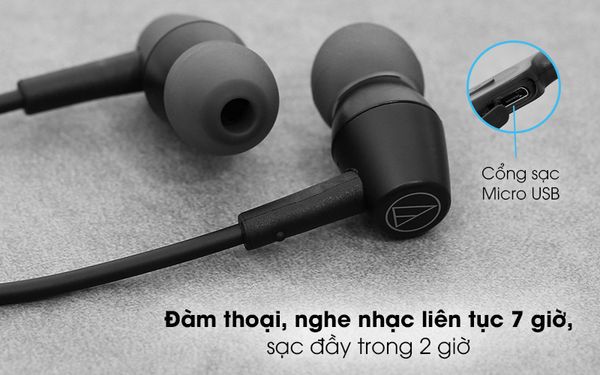 Thả ga gọi điện, nghe nhạc với thời lượng pin lên tới 7 giờ liên tục Chỉ cần sạc trong 2 giờ qua cổng Micro USB và bạn có thể sử dụng tai nghe Bluetooth này trong thời gian dài.