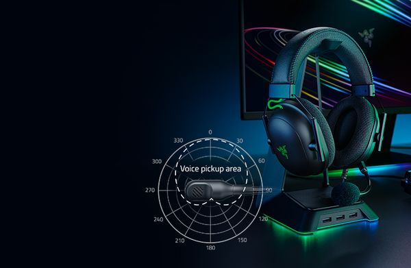 Razer BlackShark V2 là dòng sản phẩm chuyên game, nên hãng trang bị những công nghệ tân tiến nhất cho chiếc tai nghe mới của mình. Công nghệ Razer HyperClear Cardioid Mic - tính năng khử ồn cùng khả năng nhận giọng nói tốt giúp âm thanh được tái tạo chân thực. Phần Micro trên BlackShark V2 có thể uốn cong cùng thiết kế mở được tối ưu hoá, giảm thiệu sự cản trở giúp cải thiện độ rõ ràng cho giọng nói của bạn
