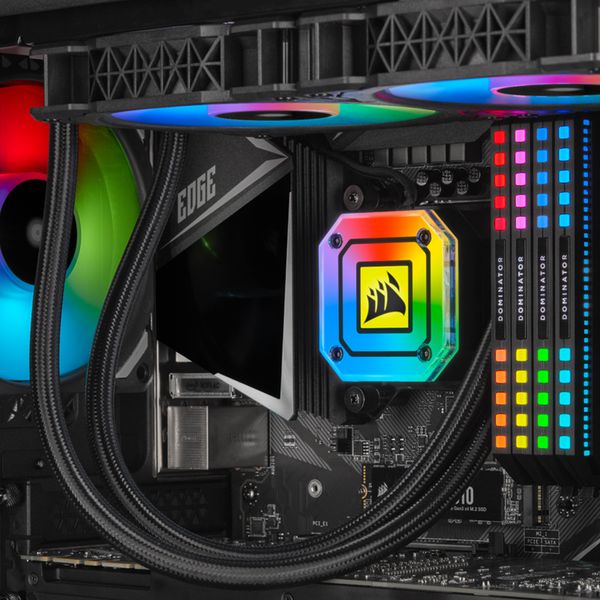 Đồng bộ thêm nhiều quạt hơn nữa bằng cách kết nối với Corsair iCUE Commander CORE đi kèm. Tùy chỉnh LED và đèn RGB tổng cộng lên tới 6 quạt
