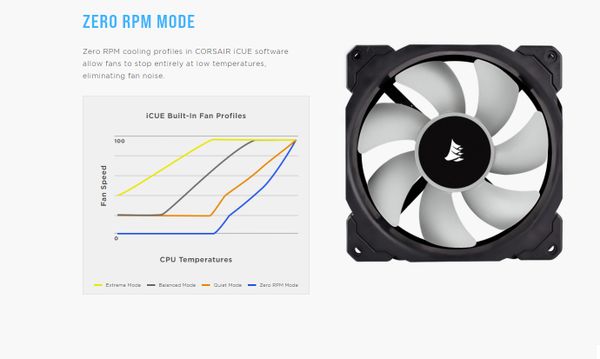 Chế độ Zero RPM Mode cho phép quạt dừng hẳn khi ở nhiệt độ thấp đảm bảo tuổi thọ và hoạt động êm cho fan