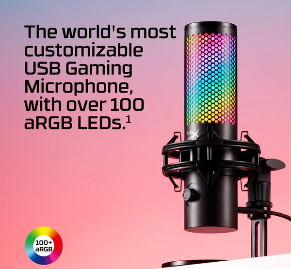 HyperX QuadCast 2 S là Micrô chơi game USB có thể tùy chỉnh nhiều nhất trên thế giới, với hơn 100 đèn LED aRGB được trang bị mang lại diện tích chiểu sáng rộng lớn. Đèn LED aRGB cho phép người dùng tùy chỉnh riêng biệt với dải màu lên tới 16 triệu màu sắc đẹp mắt.