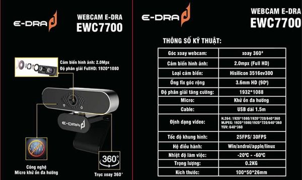 Webcam E-Dra EWC7700 là sản phẩm webcam đầu tay của E-Dra, với ngoại hình đẹp và chất lượng phần cứng đủ dùng sẽ hứa hẹn là phụ kiện không thể thiếu cho streamer, game thủ…